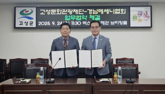 경남메세나협회가 고성문화관광재단과 고성군 지역 문화예술 활성화 및 군민의 문화 향유 기회 확대, 2025경남고성공룡세계엑스포 개최에 적극 협력하기로 했다.경남메세나협회(회장 김태한 BNK경남은행장)는 지난 24일 고성문화관광재단(이사장 이상근)과 업무협약(사진)을 체결했다고 밝혔다.당항포관광지 엑스포주제관에서 체결된 업무협약 내용은 △상호 간 교류를 통한 협력 △지역 문화예술단체 지원 및 군민의 문화향유 확대 노력 △기타 문화예술 진작을 위한 상호 지원이다. 경남매일 2025-0925 [기사 전문보기]
