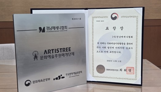 경남메세나협회, 기업·예술 상생 모델로 문화체육관광부 장관상 수상12개 시군 참여 '매칭펀드' 확대... 경남 전역 문화격차 해소 기여경남메세나협회(회장 김태한·BNK경남은행장)가 '2025 문화예술후원 매개단체 및 우수기관 인증제도'에서 문화체육관광부 장관상을 받았다. 지역 문화예술 발전 기반 마련과 민간 부문 문화예술 후원 활성화에 기여한 공로를 인정받은 결과다.올해로 15주년을 맞은 문화예술후원 매개단체 및 우수기관 인증제도는 문화체육관광부와 한국문화예술위원회가 모범적인 문화예술 후원 단체와 기관을 선정해 인증하는 제도다.2007년 8월 BNK경남은행 주도로 설립된 경남메세나협회는 전국 광역자치단체 중 최초로 출범한 메세나 기관이다. 기업과 문화예술의 가교 역할 필요성에 공감한 경제·...